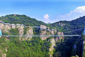 飞龙玻璃桥+绝壁天梯玻璃栈道+森林高空玻璃漂流,自带云雾的飞龙玻璃桥桥两端各自盘桓着巨龙,在高空中吞云吐雾,登五层绝壁天梯玻璃栈道,层层险、步步高 — 故有绝壁天梯之称,森林高空漂流全长约2500米、落差180米,漂过山谷丛林,每一个转弯都能够激起浪花朵朵